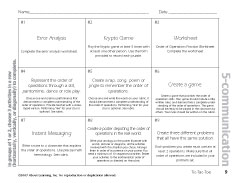 This activity can be done individually or in small groups. Choose a row to complete. You can go horizontally, vertically or diagonally. The cut-apart cards can be found in the back of the Student Activity Book p. 139. See Attachments page of this unit to view a pdf of these cards. (Communication-5-TicTacToe.pdf)